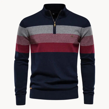 The Tyler Striped Soft-Blend Sweater combines soft comfort with clean, modern detailing. The quarter-zip and smooth knit offer adjustable wear and understated style for everyday sophistication.