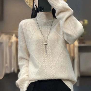 Experience ultimate comfort with this luxurious sweater, crafted to keep you warm and stylish through the colder months. Featuring an elegant cable-knit design and a snug high neckline, it offers unmatched softness and timeless sophistication.